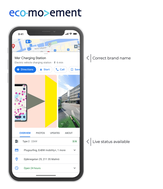 Thanks to the partnership with the leading data provider EcoMovement, you can use PinMeTo’s local search automation tool to showcase real-time availability and power data on major in-car navigation systems, EV charging apps, and map platforms for all your stations easily through one centralised platform.